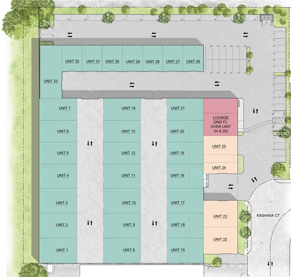 Set on over 2 acres, this car condo campus offers 33 garage condo units from 1100-3300 sqft, with the option to combine for larger units. The property also includes a 6,000 sqft Owners Lounge with indoor and outdoor rooftop areas, giving the owners a private venue for events, networking and car showcases.