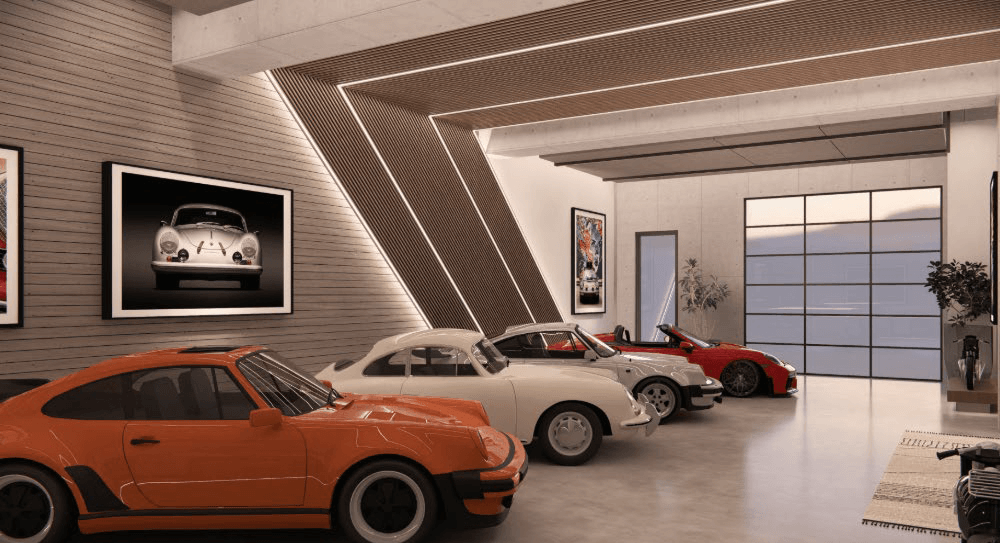 Move-in-ready garages featuring custom, elevated finishes meticulously designed to match the prestige of the automobiles they house.